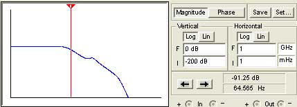 從圖可以看出電路的截止頻率約為64.6KHz,高于64.6KHz的信號(hào)將大幅衰減。
