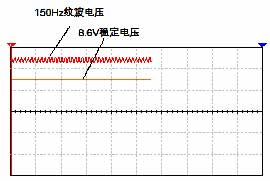 a、Vin輸入條件:電壓12V,Vpp=1V,紋波頻率25Hz。 用示波器測(cè)Vo=8.6V,見(jiàn)圖3。