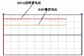 b、Vin輸入條件:電壓12V,Vpp=1V,紋波頻率5kHz。 用示波器測(cè)Vo=8.6V,見(jiàn)圖4。
